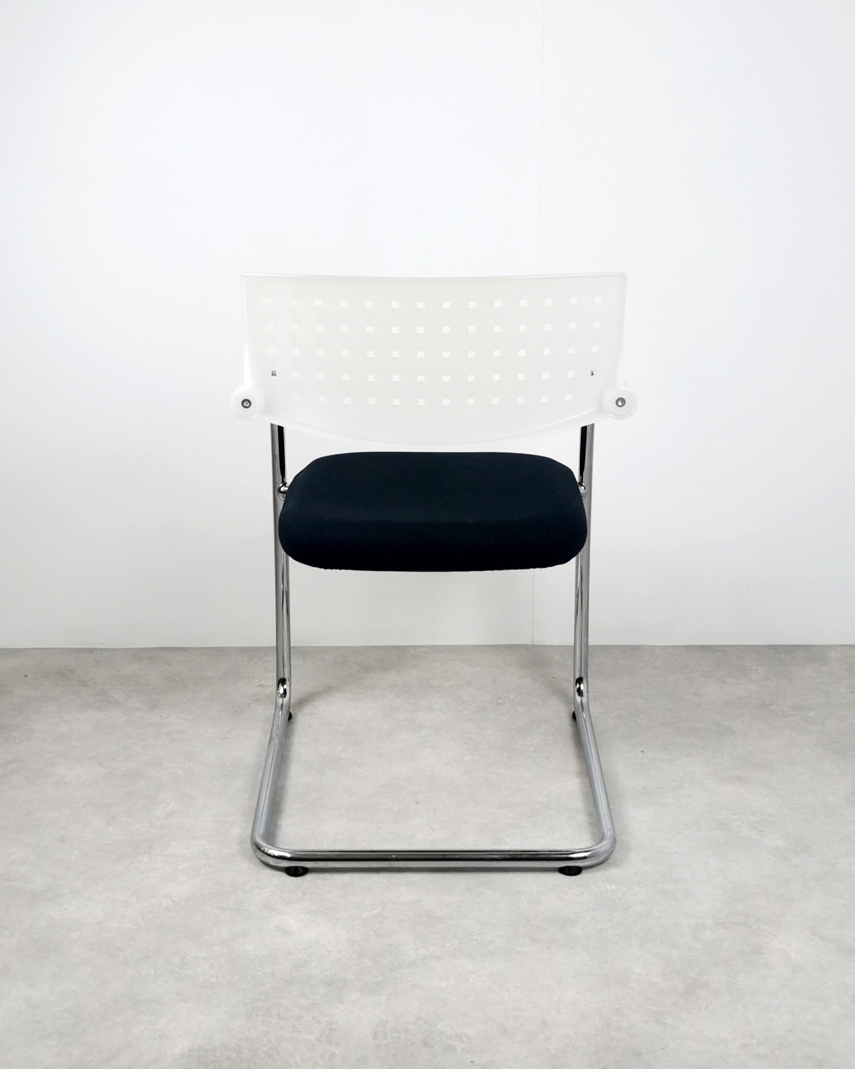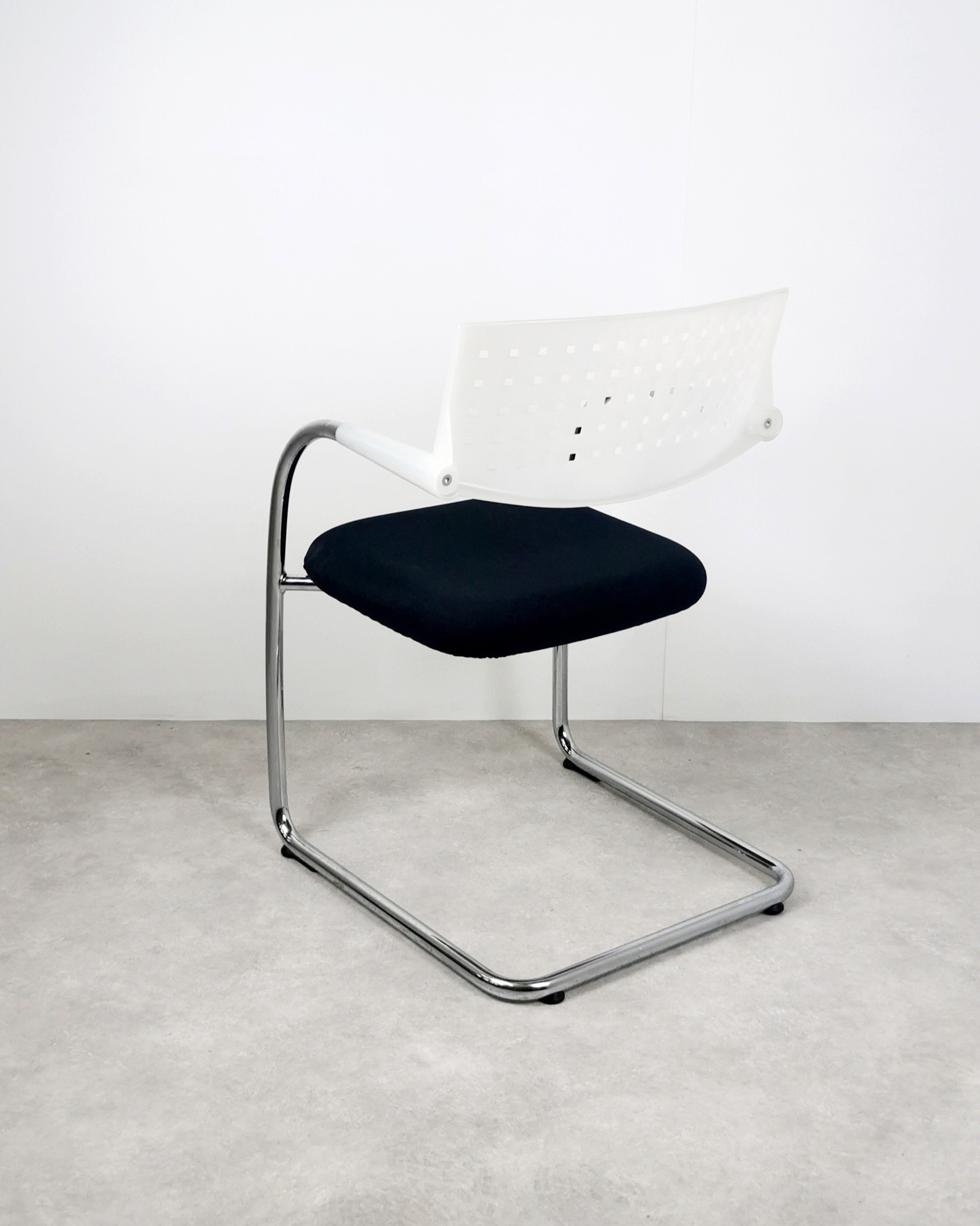 Deze stapelbare stoel past overal: vergaderruimtes, kantines, wachtkamers, onderwijs- en zorginstellingen of een stijlvolle huiselijke omgeving. De Ahrend 463 heeft een elegante vormgeving en is comfortabel. De metalen achterpoot loopt naadloos door in de armleuning. De kuip en armleuning zijn van hetzelfde kunststof vervaardigd. En de mee verende rugleuning maakt dat je heerlijk comfortabel zit.